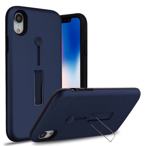 Mybat For Apple Iphone Xr Blue Black Finger Grip Hard Tpu Hybrid Case Cover Wstand