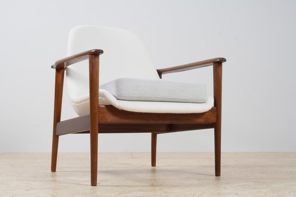 Fauteuil Moderne Scandinave En Teck Et Tissu Blanc Et Gris De Ope 1960s