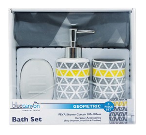 Détails Sur 4 Pièce Peva Rideau Douche Accessoire Set Géométrique Grisjaune