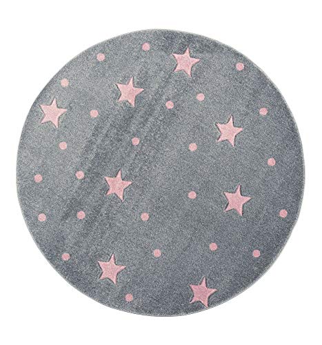 Tapis Enfants Happy Rugs étoile Gris Rose 133cm Sur