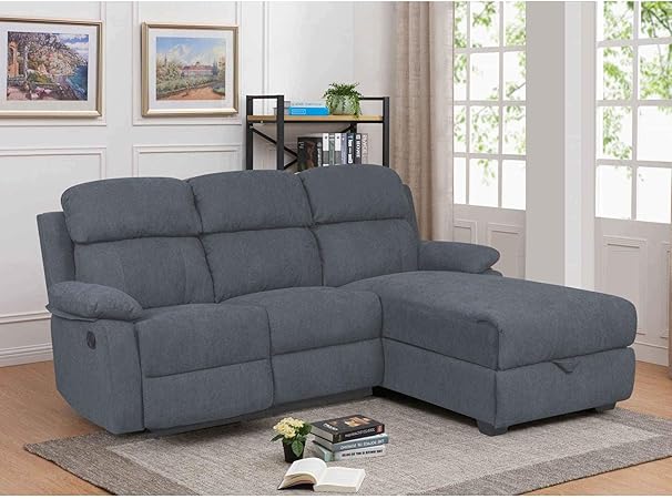 Decoinparis Canapé Relax Avec Méridienne Et Coffre De Rangement En Tissu Keaton Angle Droit Gris Foncé